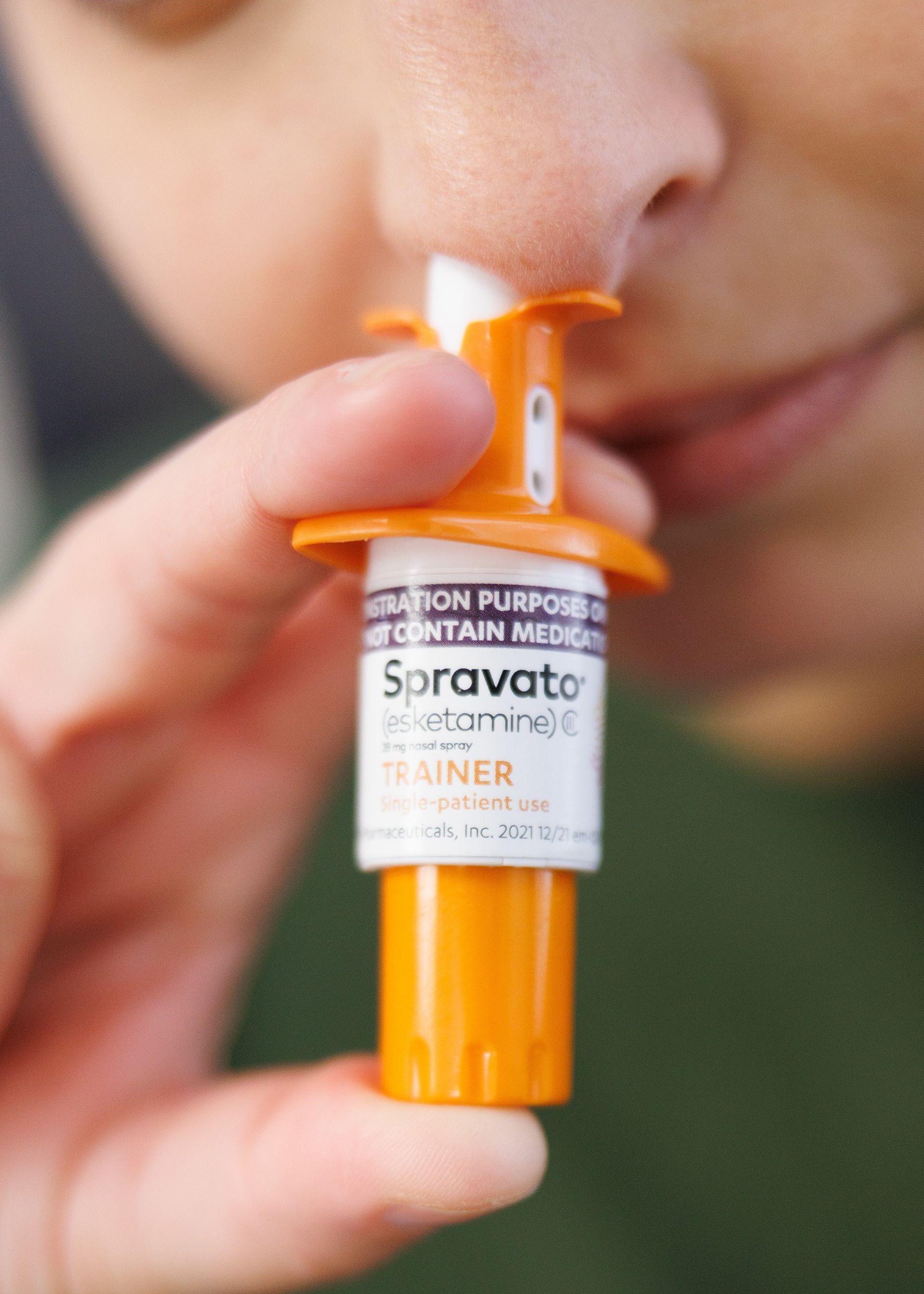 Spravato treatments start with self-administering the nasal spray in two to three doses under medical supervision. One of our caring staff members remains with you throughout the session, ensuring your comfort and safety. During the approximately two-hour monitoring period, we provide soothing music, mindfulness meditations, and aromatherapy, or you're welcome to bring your own entertainment. For Spravato, a ride home is required after each session.